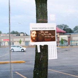 We then went into action and placed some witnessing signs on posts and a bus stop. Here are the results: