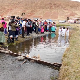 On Sunday, October 2nd, the church and I traveled to the rural area of La Paz. Pastor Mateo Quispe and his congregation were having a baptismal service in a river close to town. Four sisters and three brothers came to the waters to give their lives to the Lord Jesus. The sisters could not hold their tears as they entered in the waters. They were really anxious to fulfill this Bible commandment in their lives. The pastor read some baptismal quotes and then they performed the service. It was very emotional to see the entire congregation coming to greet the seven new believers in Christ. They are so happy to be members of the Bride of our Lord Jesus Christ. It really was a wonderful day of fellowship with our brothers.