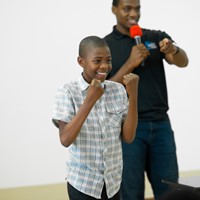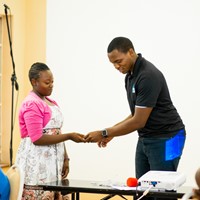 Next on the program was the "Tape Game" whereby each team had a member who acts out a title of the sermon they'd pick out from a hat. Each team had to interpret the actions and speak out the sermon title that their member was acting or gesturing, within a set time. This was fun!