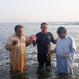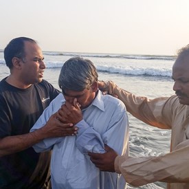 Pastor Ilyas Karnal was working with his church for 34 years, but after hearing the truth of Bible, he and his congregation received the end-time Message. Pastor Ilyas and evangelist Paloos visited our office, and I told them about water baptism in the Name of Lord Jesus Christ from the book of our prophet (The Godhead Explained). After two hours they said, “We are ready for water baptism in the Name of the Lord Jesus Christ.” Then we went to sea and I re-baptized them in the Name of Lord Jesus Christ. Praise the Lord!