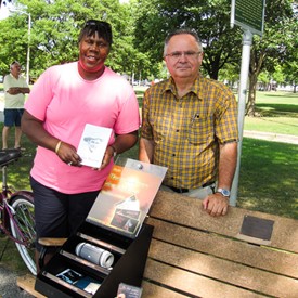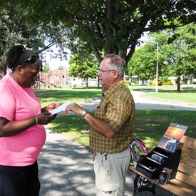 The first place we visited was Burlington, Vermont. The city is located three hours drive from my home. I ask a young brother from our church to come with me. To present The Voice, we use a small "evangelist kit. “On Saturday at 5 pm we were at "Battery Park" ready to fire, which means, "press play." Our artillery was composed of a cell phone with the VGR micro SD card containing all of Bro Branham’s messages, one Bluetooth speaker and a display for the VGR’s tracts. Our mission was: Play the Voice and provide an opportunity for people to get their own tracts.