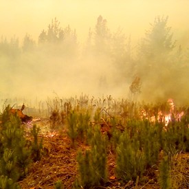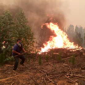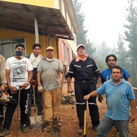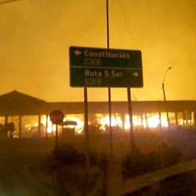 On Monday morning, after three hours driving north from Penco through Highway 5, we arrived to Villa Alegre and turned west to get to Santa Olga. There was a long line of vehicles waiting on the road and there were policemen asking the drivers for their destination. We told them we were going to see friends and brothers in the faith in Santa Olga and San Ramón. They told us the road was closed because the fires had started again and it was dangerous to continue. We were really disappointed and asked him about another possible route to get there. He told us we could go south again to Cauquenes, turn west, and then drive north by the coast to Constitución, and get to Santa Olga. We did this and it took us another four hours to get there. When we started getting closer to Santa Olga by the west, some soldiers told us that it was impossible to get there as the fires were raging and we could only go to San Ramón. We called Brother Elias and he told us he would meet us there.