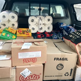 After talking to Brother Elias Gonzalez, the pastor of the San Ramón Tabernacle and coordinating a visit to see him and his church, we prepared many boxes and parcels with food, water, bathroom supplies, flour sacks, and fresh baked bread for the believers.