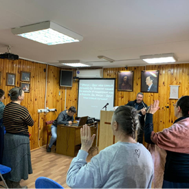 Recently, a Church service was prepared especially for the Ukrainian believers. After the VGR brothers greeted the congregation and laid a platform for the Message, the tape was projected on a screen in the Russian language, in sync with Brother Branham speaking, so everyone could follow along. By the end of the service, the lingering worries vanished, and their cups were overflowing with the blessings of the Lord and His assurance that “all is well”, as these eagles rejoiced around the Spiritual Food for our day.