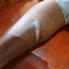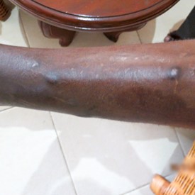 His testimony still remains that he is healed and happy in the Lord. He showed us the healed wounds, and his joy was increased when he found a copy of his testimony from the VGR website (branham.org) printed on the display table.