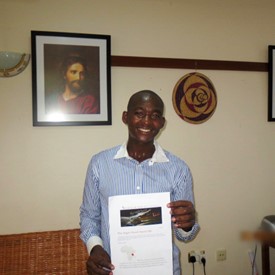 Brother Simon Mungure visited the office here in Dar es Salaam on his way back to Miguruwe, where his work station is located in the national park.