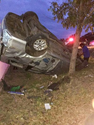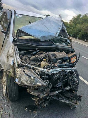 There were four of us in the car: the driver, an office mate who sat in the front seat, another one sat behind the driver seat, and I was sitting at the back of the front seat. Our driver, who fell asleep while driving, was thrown out of the car to about 65 feet away.