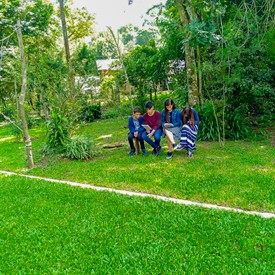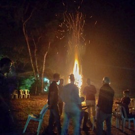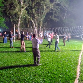 Dinner was offered with different options of food to satisfy different tastes. Some young people played volleyball at night, while families got around the bonfire with an acoustic guitar playing gospel songs.