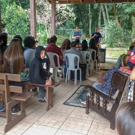 Every year, believers in Tijucas do Sul, along with Curitiba church, organize a full-day of special Quiet Time. At this time the theme was "Hear ye Him", having almost 100 brethren attending. There was a lot of preparation and many people and houses were involved.