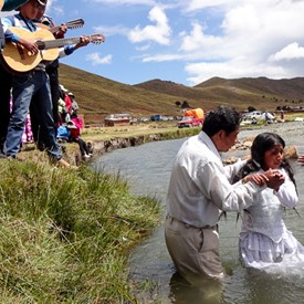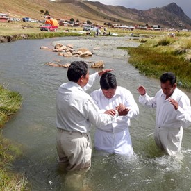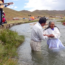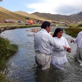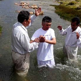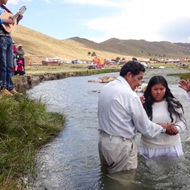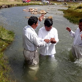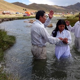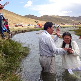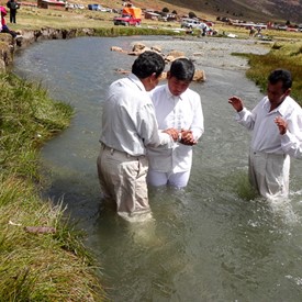 On Sunday, April 10, after a few hours of sorting and preparing the new material we had just received from Jeffersonville, we left downtown La Paz to go to the outskirts of the city. The plan was to visit a church of about 40 believers. It was a wonderful surprise to see as we arrived there, the local church was having a special baptismal service at a nearby river.