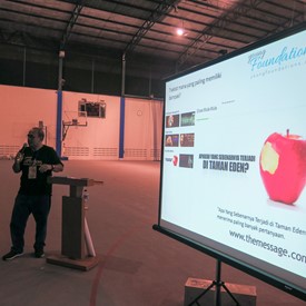 We hired a gym at a Christian school and held the YF event from 11:00am to 8:30pm. The young people came from churches around Jakarta.