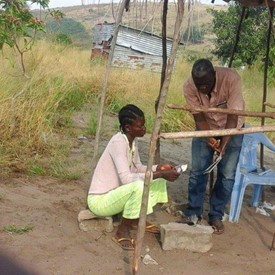 Brother Mali, VGR office manager in the Democratic Republic of Congo (DRC), sent us the following pictures of a brother from the Congolese city of Mbuji-Mayi doing his part to spread the Gospel. Brother Bobo Binsala often travels to different places in DRC to share Brother Branham’s tapes. The following pictures are from his evangelistic work in the suburbs of the biggest city of DRC: Kinshasa.