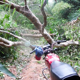 Right in the middle of the forest, the way was blocked by some trees that fell across the path because of the wind and rain. We did not know what to do, then, all of a sudden, appeared two young boys and a young girl, coming from nowhere. They were running behind us and told us they knew that we would not be able to go through that spot. They helped us and we managed to get through.