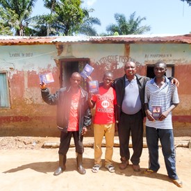 From there, we rode our motorcycle toward the territory of Ingende, where we found a group of brothers who listen to the tapes with the church of the librarian. They bought a small piece of land and built a beautiful little house of two rooms for the VGR library. They operate simply by the grace of God. Below are a few pictures of the Ingende library: