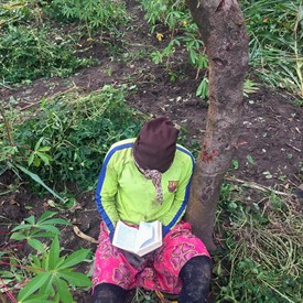 It's holiday here in Cameroon, at the same time corn and groundnuts (peanuts) are being harvested. The Sunday school here had teamed up in great number to go and help believers have Quiet Time and fellowship. Once the international Quiet Time arrived, which is 12:00 PM here in Cameroon, they all stopped to pray, meditate, and listen to the sweetest voice of our lovely prophet. It was a great time in His Presence.