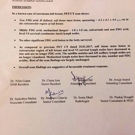 The doctors performed a second PET scan test. But when the reports came we were surprised to see no sign of cancer in the PET scan.