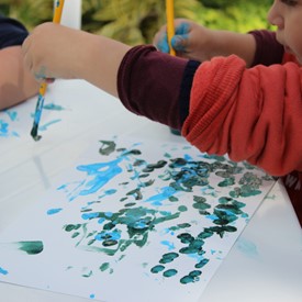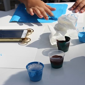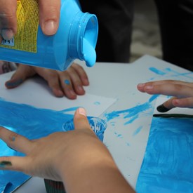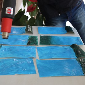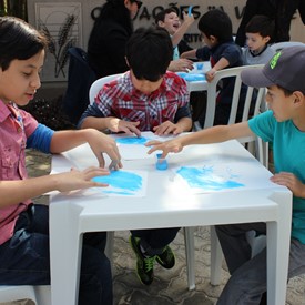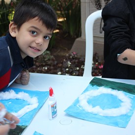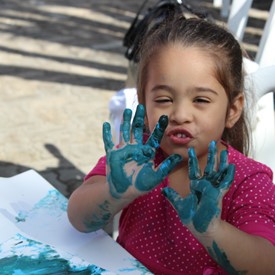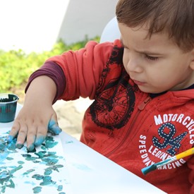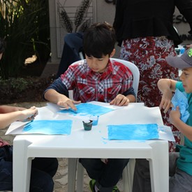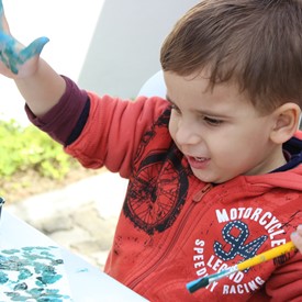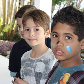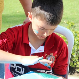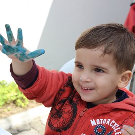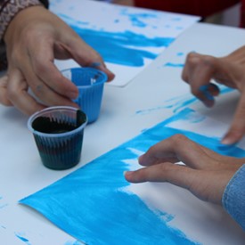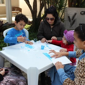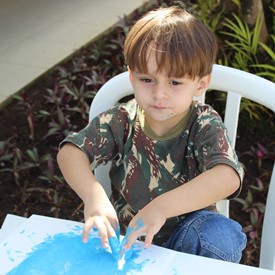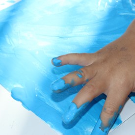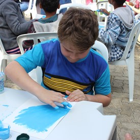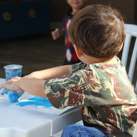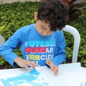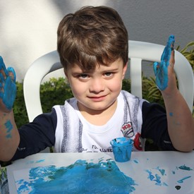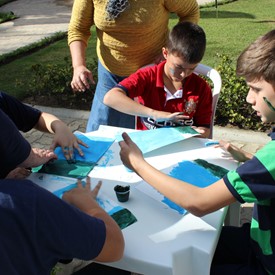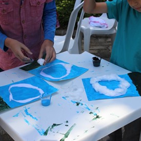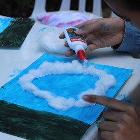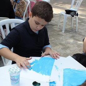 Then we went to the drawings with paints. We showed them the picture of the Cloud and instructed them to do the same. We put brushes at their disposal, but they wanted to use their little hands and fingers to paint. From the photos, you will see the way they got at the end of the paintings. We put an assistant brother in charge to warm them up with a blower and dry faster that they could get the job done on time. It was very good because everyone managed to complete their activities, some with better perfection than others. But the goal was to make them understand what they were doing, and we believe that we could pass this on to them.