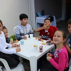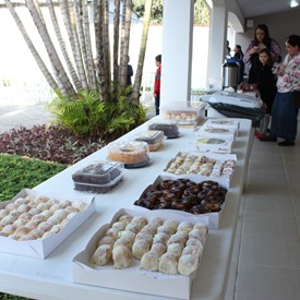 After our prayer, we had a delicious breakfast the way that children like, with hot chocolate, buns and chocolate cakes; it was amazing!
