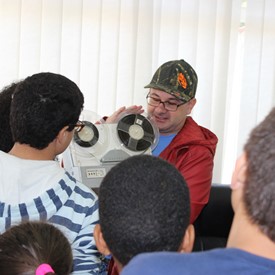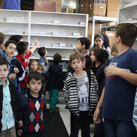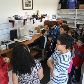 After our breakfast, we put them in line and took them to the office. We went through several rooms and different departments until they reached the stock of messages. There they stopped and saw the amount of material that we have to send to all Brazil. Their little eyes were bright and alert to everything they saw.