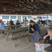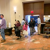 And this stop of the Tour was a special blessing that we haven’t experienced at any other stop. Brother Joseph asked the Branham Tabernacle to have prayer at 12:00PM and 3:00PM on Saturday, so we invited the gathering to join us in prayer during those times. It felt like Still Waters Camp, as each person found his or her spot to spend the next 15 minutes speaking to the Lord Jesus. Quietness surrounded the facility, as heads were bowed in silent prayer. After prayer, it seemed as if the atmosphere was a bit more charged as we returned to our posts and the people began to fellowship again. Even the caterers seemed a bit taken back at what they saw. Before leaving, one of the workers made sure to tell us, “Thank you for what you are doing. May God bless you.”