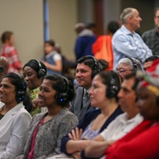 Some traveled more than eight hours to be with us, as a total of about 220 predominantly French-speaking believers attended the Agapao Tour in Three Rivers, Quebec last night. The team was really encouraged by the welcoming spirit that greeted them as they explained the different aspects of the work at Voice of God Recordings.