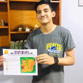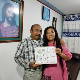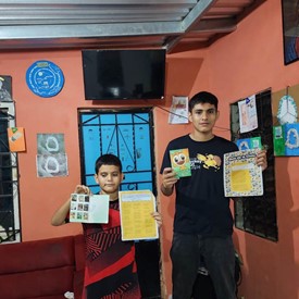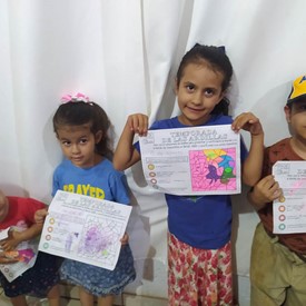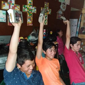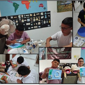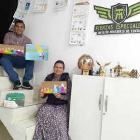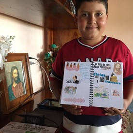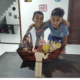 A family from Pasto, Nariño in Colombia showing their finished Creations project of "Has Jesus Got A Boat?"