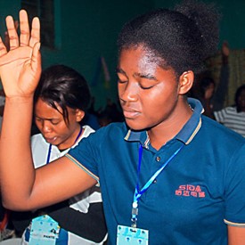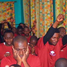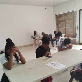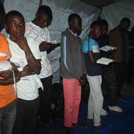 Quiet time in Lubango, Angola. The youth listened to the tape, A Prisoner. For many of the youth, it was their first experience of having Quiet Time.