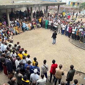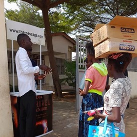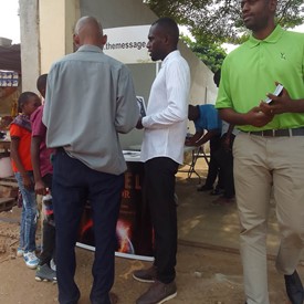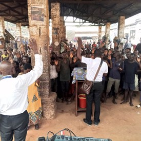 Tape evangelization campaign in Mokambo, Democratic Republic of Congo.