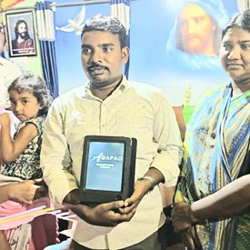 Hundreds of families received an Agapao Tablet in a recent distribution in several villages of Congo Brazzaville.
