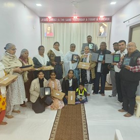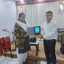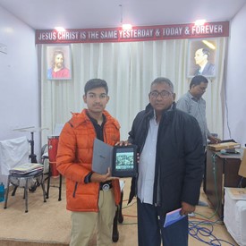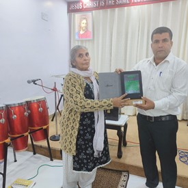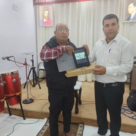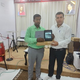Bro. Sunil Doliya, along with some fellow Brothers at the Royal Seed Church in Ajmer, Rajasthan, India, received 15 Agapao Tablets in the Hindi language for their local congregation. These Tape believing Brothers send a hearty "thank you" to the Bride of Christ, for this big favor of providing the spiritual Food for the Saints there in their local Tape Ministry.