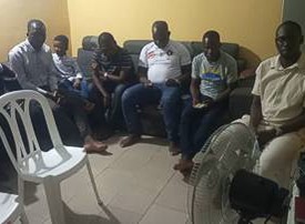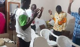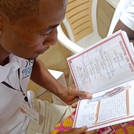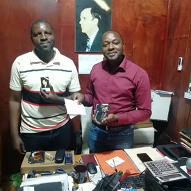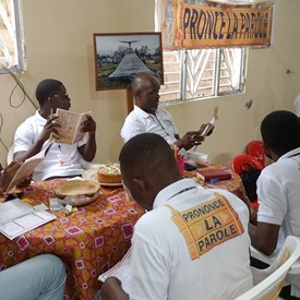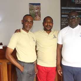 Bro. Yvon (office manager), Bro. Fredy (assistant) and Bro. Joseph (secretary) from the VGR library located in Pointe Noire, Congo Brazzaville.