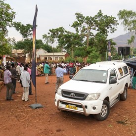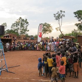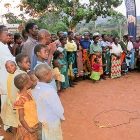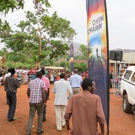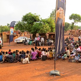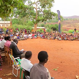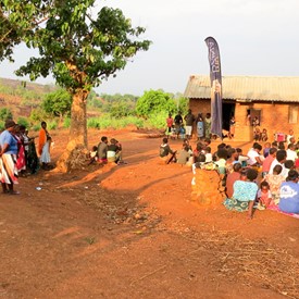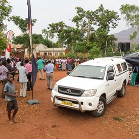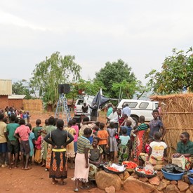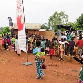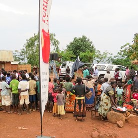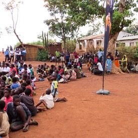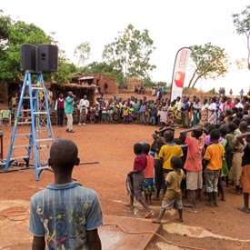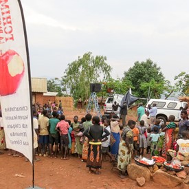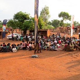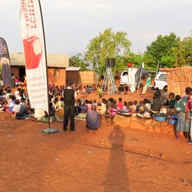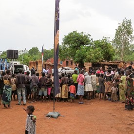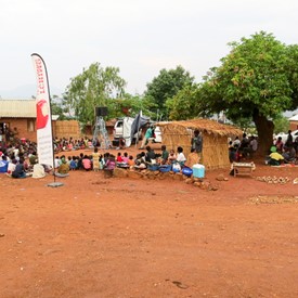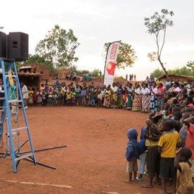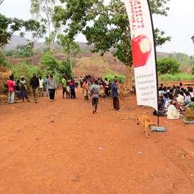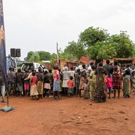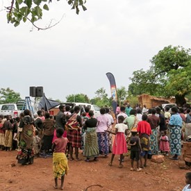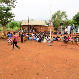 On Thursday afternoon, soon after lunch break, the team left the VGR offices loaded with all tape outreach equipment. Immediately upon arrival, we assembled our equipment. Like a magnet, music playing from our equipment started attracting people from surrounding areas. In no time, the crowd swelled. This was the first time the people around this area had witnessed such a kind of arrangement.