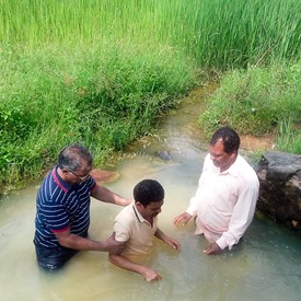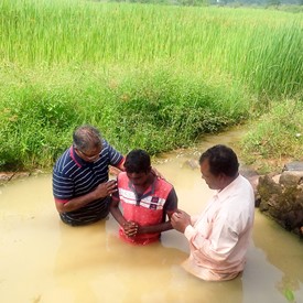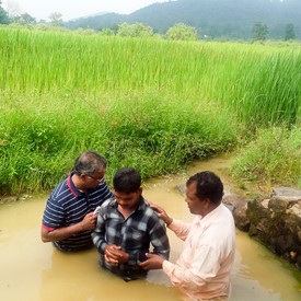 On the 10th morning at 10am, we gathered at one village named, Dantiamuhan. After playing the tape and teaching little about our prophet, four believers came forward to accept Christ and were ready for baptism. All of them were of the Hindu belief.