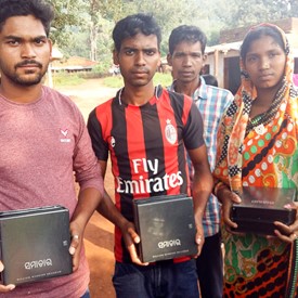 We distributed six sets of Oriya CDs and 4 CD players to them.