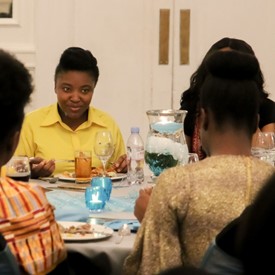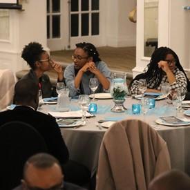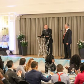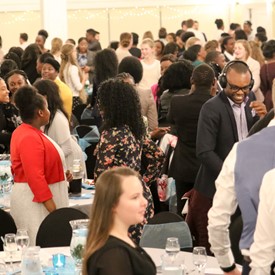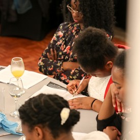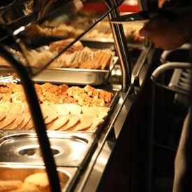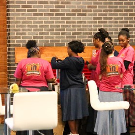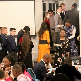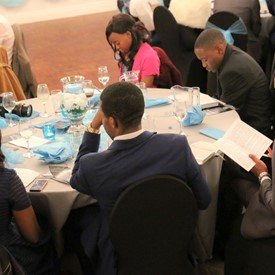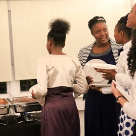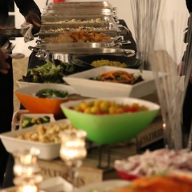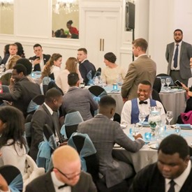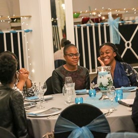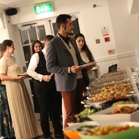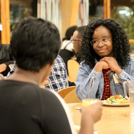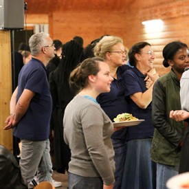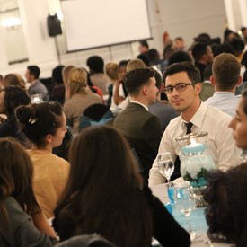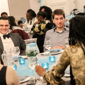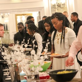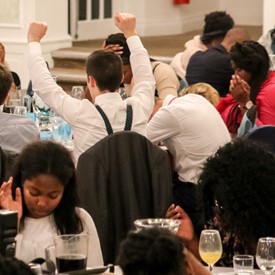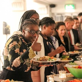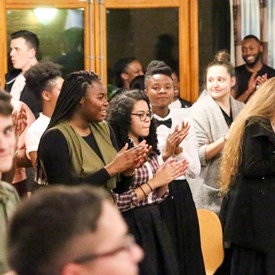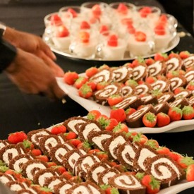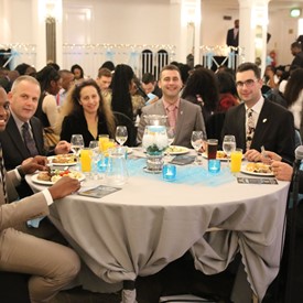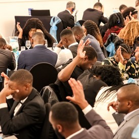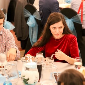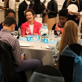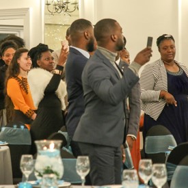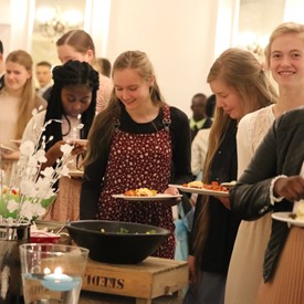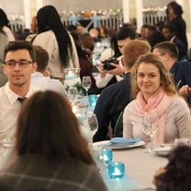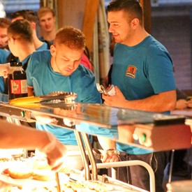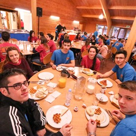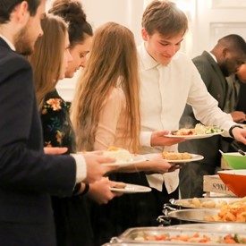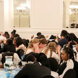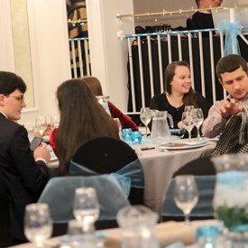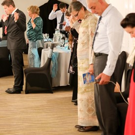 Several chaperones started setting up for the banquet in the late morning. It took several hours to finish decorating, finalize the audio, and comb through various details. At 6:30 PM youth started pouring into the banquet room with expressions of awe. After a brief welcome, lines were formed at the buffet tables where staff served deliciously prepared food. What a time of fellowship and relaxation! Truly eating accompanies fellowship.