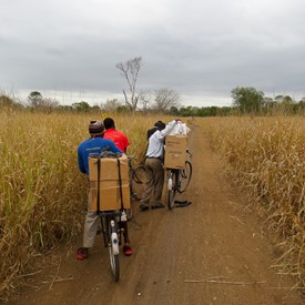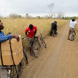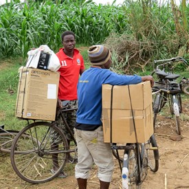The truck packed with precious cargo, I drove for about 160km from Blantyre-Malawi to a bordering town with Mozambique; the brothers came from the other side on their bicycles to welcome me. The package included a box of Chichewa Message books and tracts; I also borrowed a system for the tape meeting.