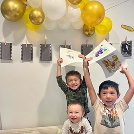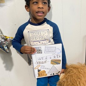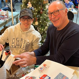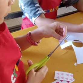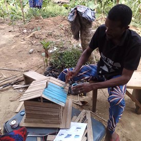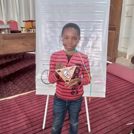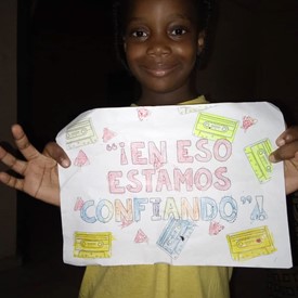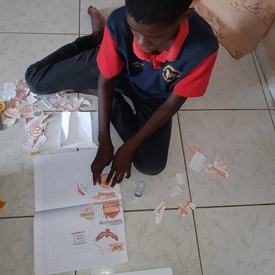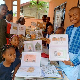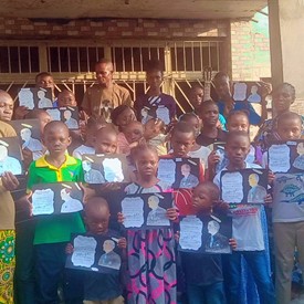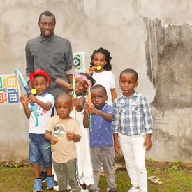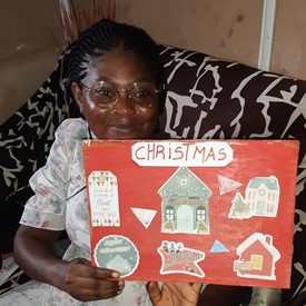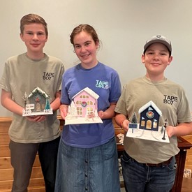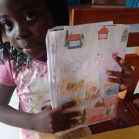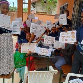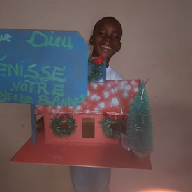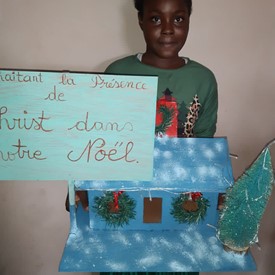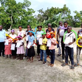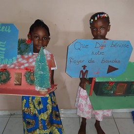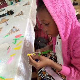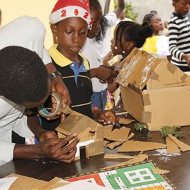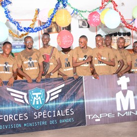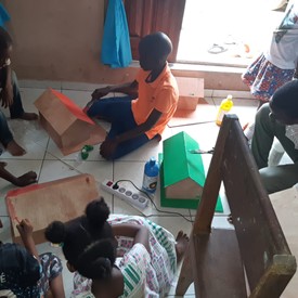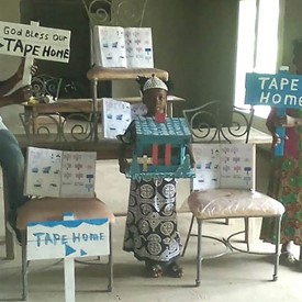 A group of young believers from Gabon making the Christmas "Tape Home" Creations project.