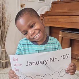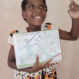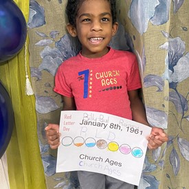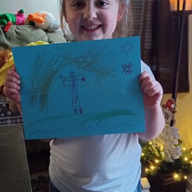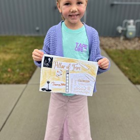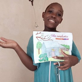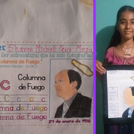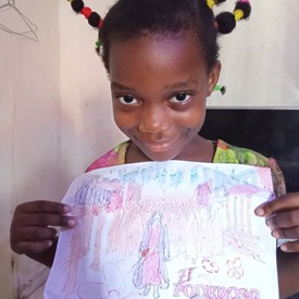 A young Sister in Tennessee with a picture she drew of Jesus for Brother Joseph.