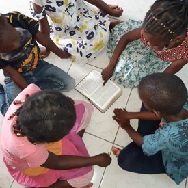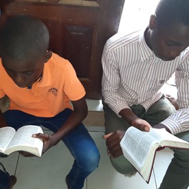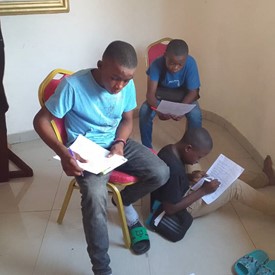 Tape quiz day at the VGR office in Nzassi, Congo Brazzaville, where the youth listened to the two Tape quizzes of December and had Quiet Time.