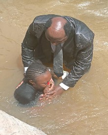 A Tapeboy baptizing in the Name of the Lord Jesus Christ in Cameroon.