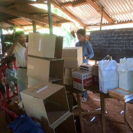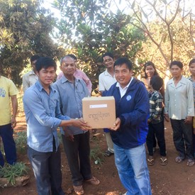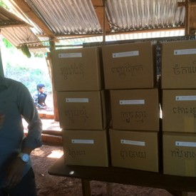 There are 16 districts in Kampong Cham Province. I had bought the cartons to package the Message books for the 16 districts. The sticker of the VGR logo and the office address were attached on all the boxes with the Kampong Cham- Districts names inscribed. It would have taken us too much time, cost much, and exhausting to travel to the 16 Districts. The Lord provided brothers with the burden to spread the Message and to help in the distribution.