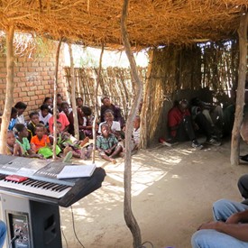 On Sunday morning, May 15th, we moved on to a place called Mangámba. We had previously had a tape outreach meeting here and we had baptized about 12 people. We decided to have a Sunday church tape service with the people that were baptized. These people gather at the makeshift church. It was a blessing to fellowship with them and the service was glorious.