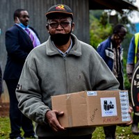 We proceeded today with our distribution in Murang'a region, and our stop today was near the Abadare Forest at a place called Kiamuturi. Murang'a county has very many hills and valleys. We set out early and arrived at 9:30AM. We started the meeting at 10:30AM.