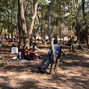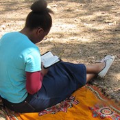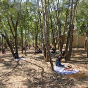 After the morning tape service, we sang a few songs and walked out of the chapel to a calm and quiet space where all the youth were told to pick a place by a tree to sit and have a quiet time with God. I could see many young people kneeling and praying in silent prayer with hands raised, others listening to the Message on their phone whilst others sat to read Message books and the Bible. This went on for an hour. When the time was up, you could hear many youths say, "We needed more time with God, the time frame was too short."