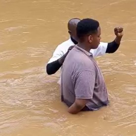 A brother answered the call of the Lord and entered the muddy waters in Rwanda to be baptized in the Name of the Lord Jesus Christ.