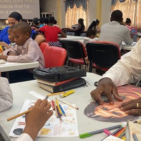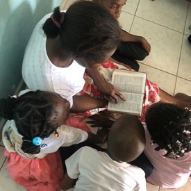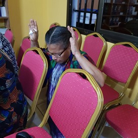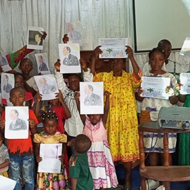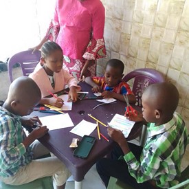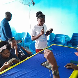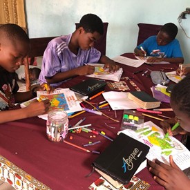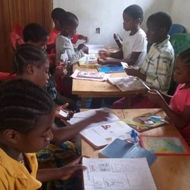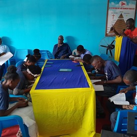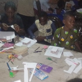 Brother and sisters gathered in Cameroon for Quiet time and to work on Creations activities.