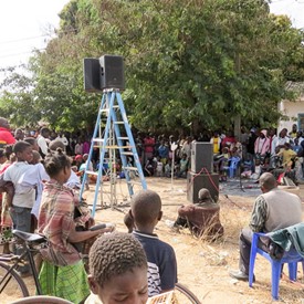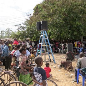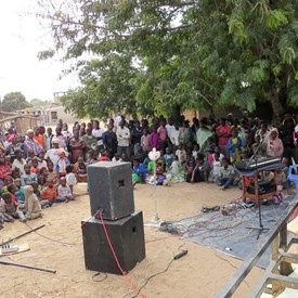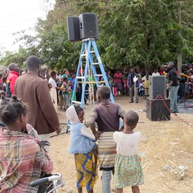 As soon as the boys confidently started assembling our equipment, people's attention was aroused. When the music started to play, the audience began to swell. This was the first time the people around this place had witnessed this kind of an outreach. In no time the place was already full with people who were visibly enjoying the beat of the music.