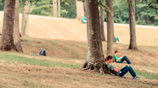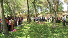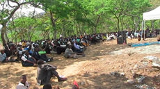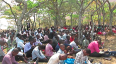 The youth in Malawi sit under the trees to listen to a message from Brother Branham.