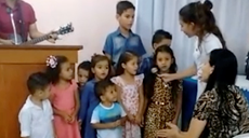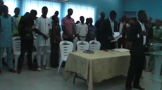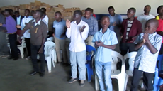 Group of believers from Cameroon singing a song written about the Agapao tablet.
