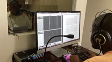 Translating to the Chitonga language at the VGR office in Zambia. If you listen closely, you can hear Brother Branham speaking from the headphones, then the translator records. One brother is checking, the other is recording.